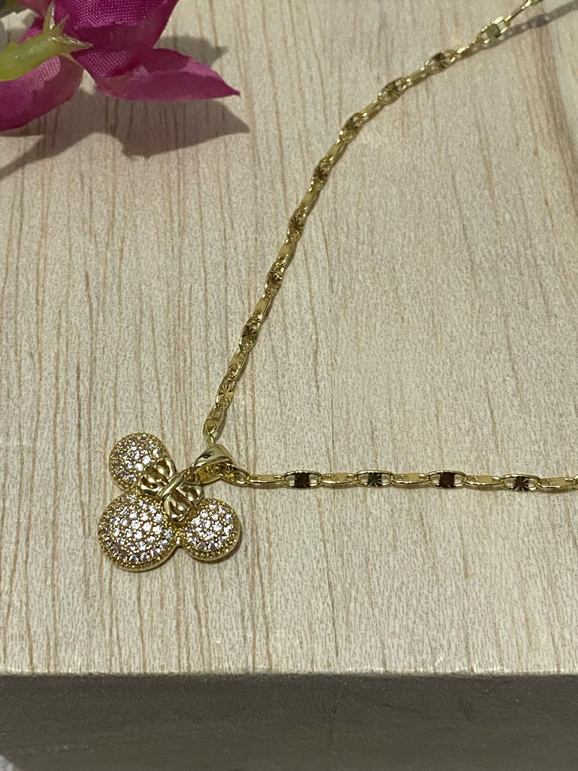HERMOSAS CADENAS EN MATERIAL RODIO DORADO RESITENTE, CON DIJE DE MINNIE EN RODIO DORADO Y CRISTALES.